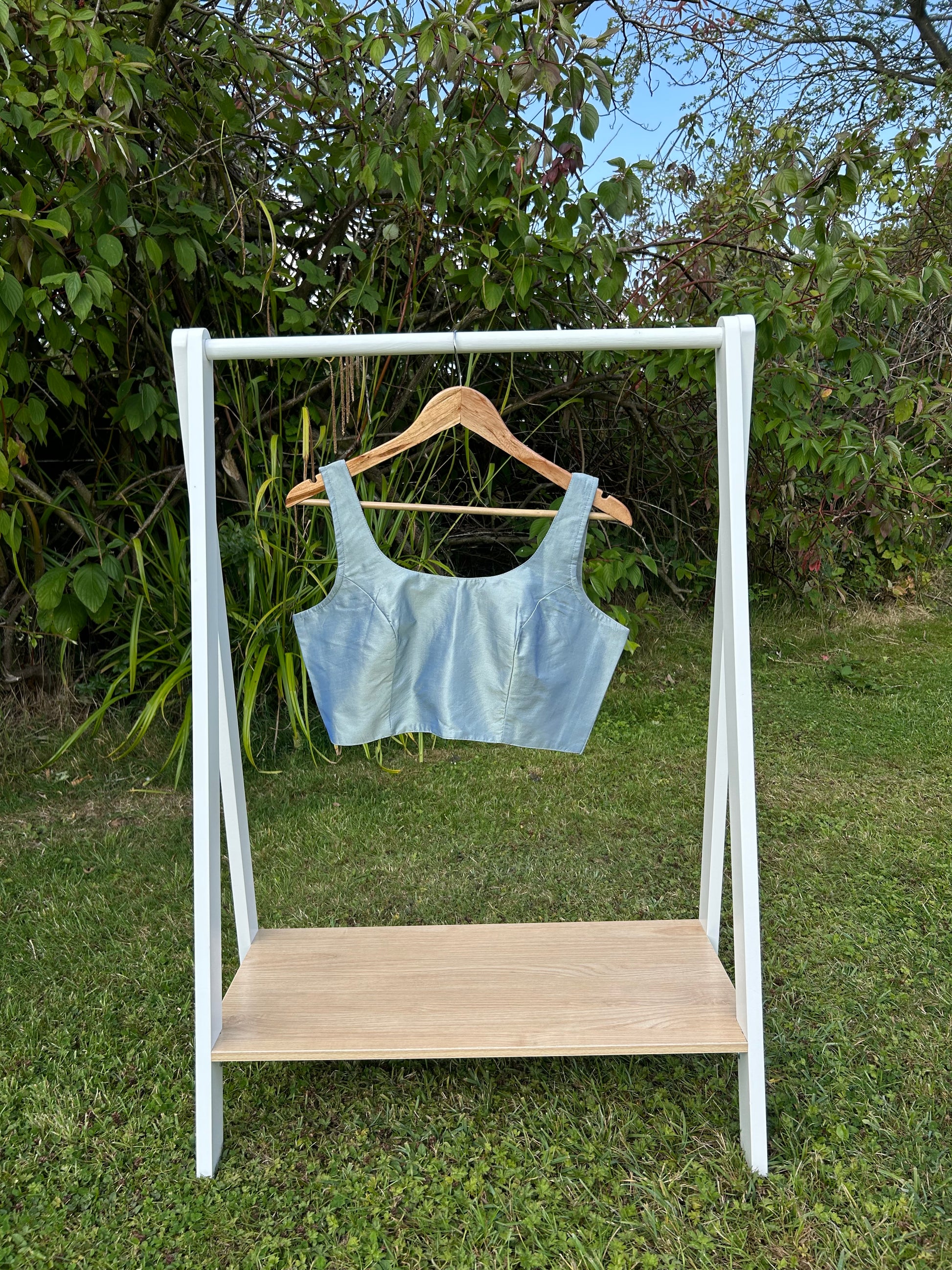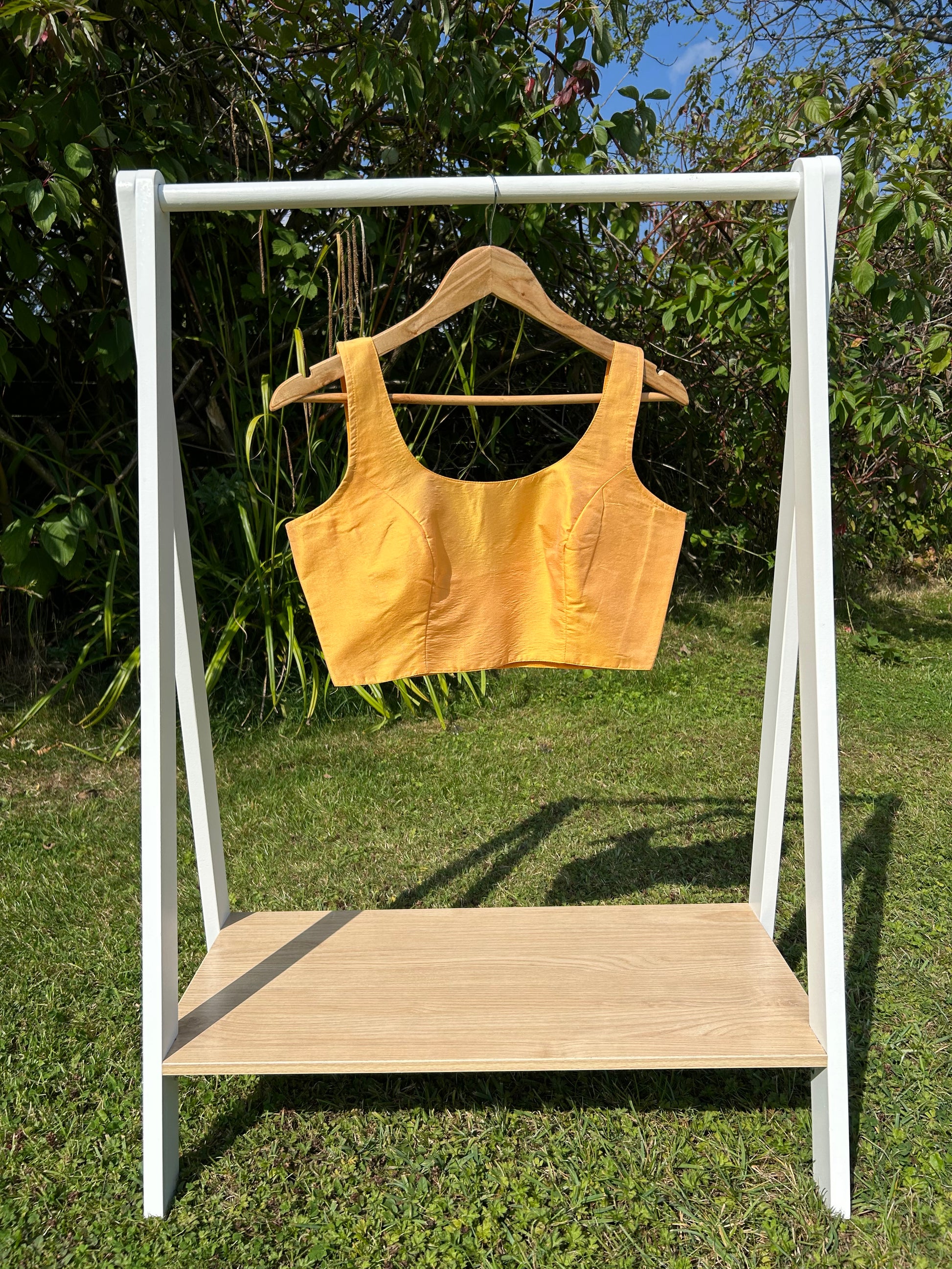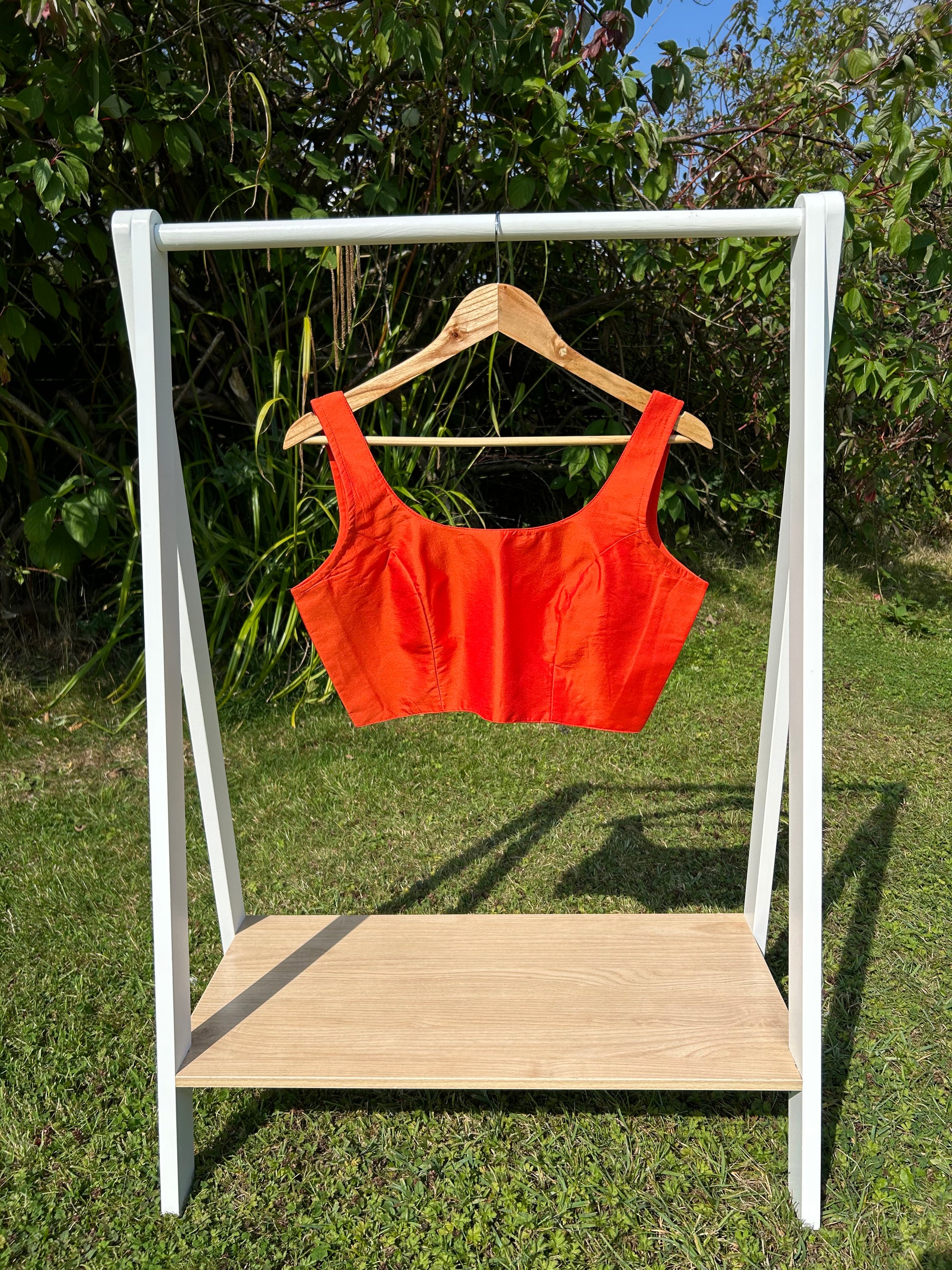 Our corset tops take the classic lehenga top and make it wearable with anything. Made with Chanderi Silk, they come in seven beautiful colours and are sewn for comfort and versatility. Hook and eye clasp at the back.